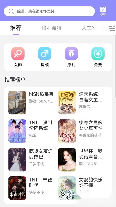 1、进入软件首页就能看到推荐的小说封面,选择并点击一个小说封面