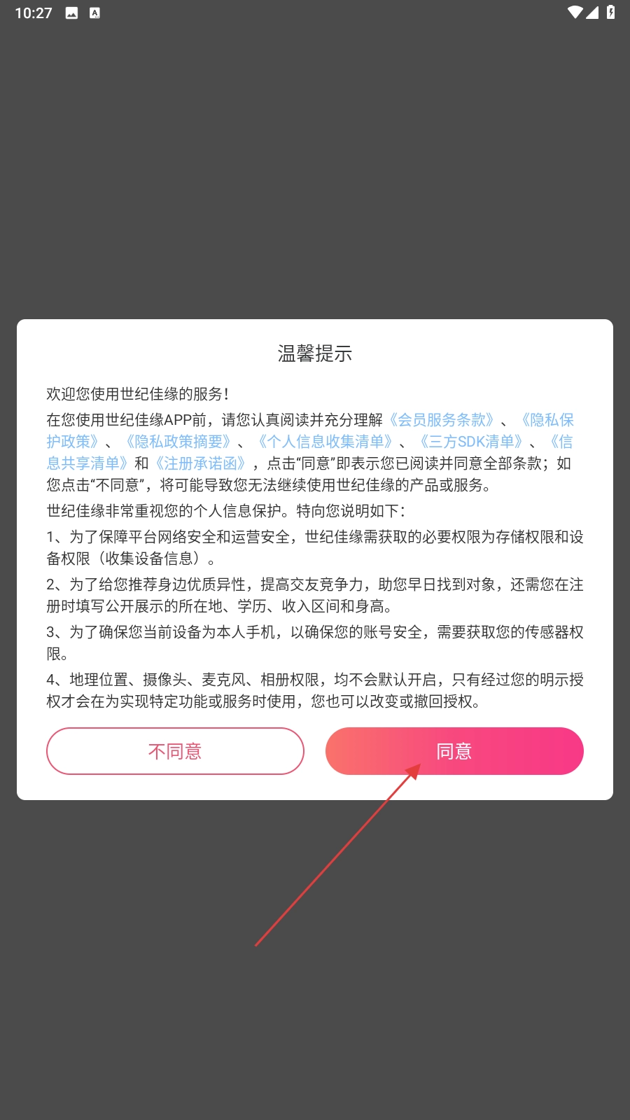 使用世纪佳缘时,请先阅读【温馨提示】条款,点击【同意】后即可开启服务使用。