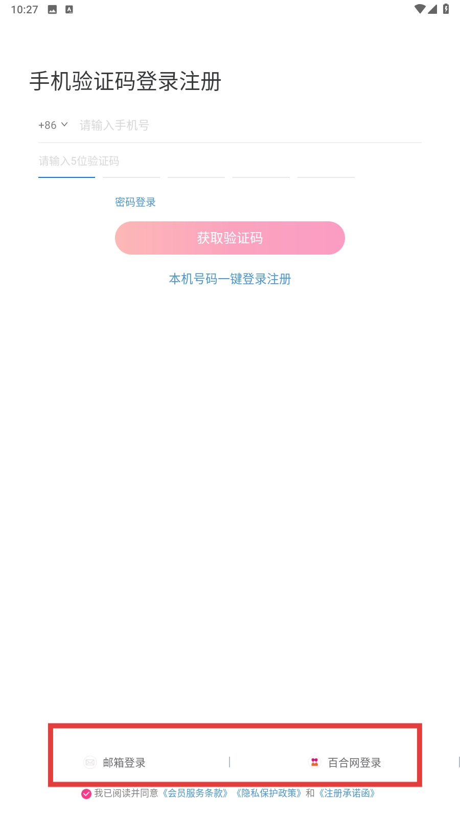 要是不想用手机验证码登录,可以点击页面底部的【邮箱登录】或者【百合网登录】选项,来切换登录方式。