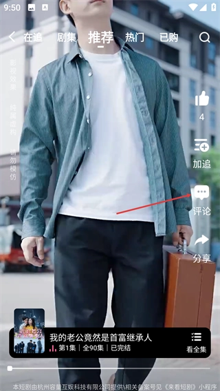 点击右侧的【评论】按钮,就能打开这部短剧的评论互动界面。