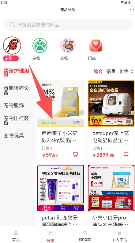 商品分类清晰且专业,像清洁护理用品、药品这类垂直品类划分得十分明确。宠物主能够依据宠物的具体需求,快速找到自己需要的商品。