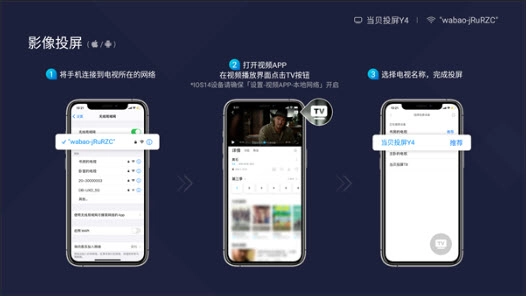 3.移动设备快速连接电视终端后,就能在手机上分享精彩内容。