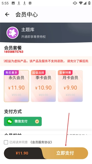 勾选相关协议后,点击【立即支付】按钮,即可完成会员套餐的支付流程。