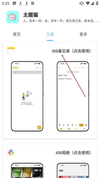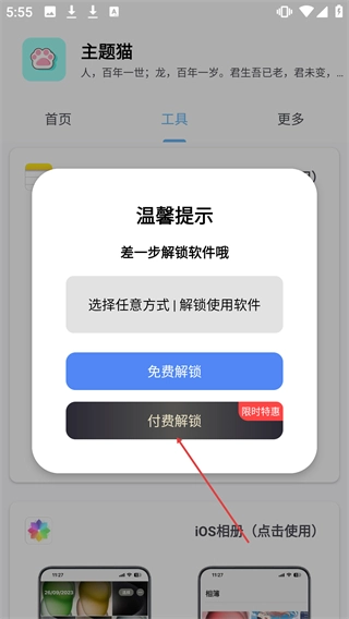 点击【iOS备忘录(点击使用)】的区域,即可触发解锁提示弹窗。