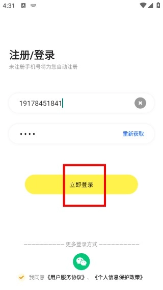在注册或登录页面填写完手机号和验证码后,勾选同意相关协议,点击【立即登录】按钮就能完成登录流程。