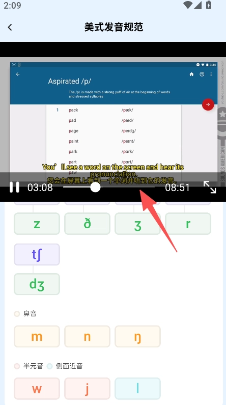 支持对视频播放进度进行控制,能够灵活调整学习节奏,从而助力精准把握音标发音的要点和逻辑。