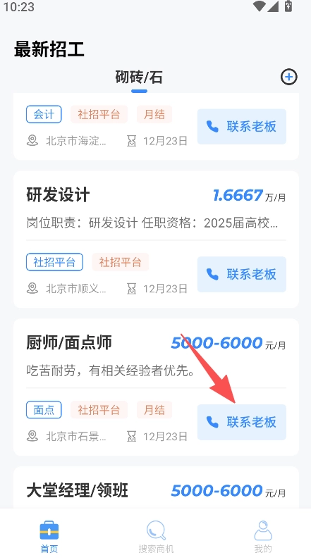 在最新的招工列表里,找到你想应聘的岗位,然后点击“联系老板”这个按钮。