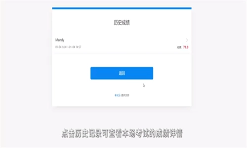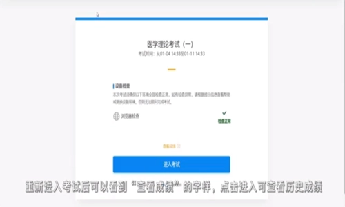重新进入考试界面后,会出现“查看成绩”的选项,点击该选项就能查看历史成绩记录。