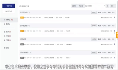 考生在成绩公示后,使用此前参加考试的设备重新打开考试链接或扫描二维码。