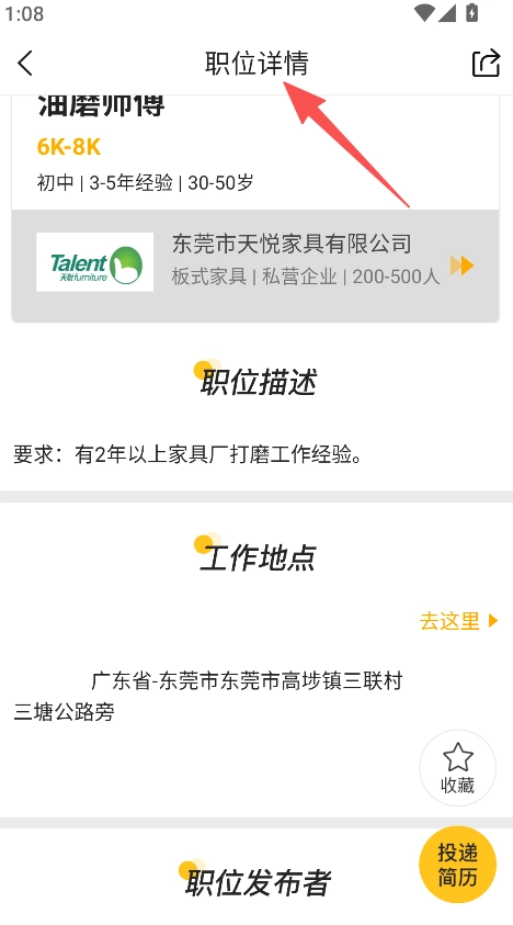 挑选目标岗位进入详情页面,查看岗位描述以及工作地点。