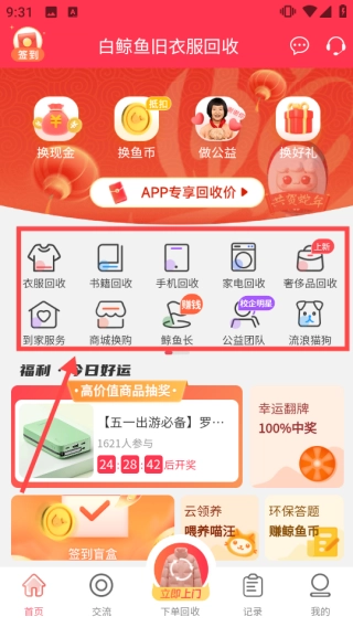 我们构建了一套多元积分体系:用户回收旧物可获得鲸鱼币,积分商城内玩法多样,通过分享好友、参与活动等方式也能获取鲸鱼币,这些鲸鱼币可用于兑换实用商品或抽奖机会。