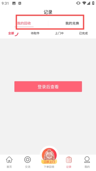 在记录页面,则是可以查看我们的回收、兑换情况