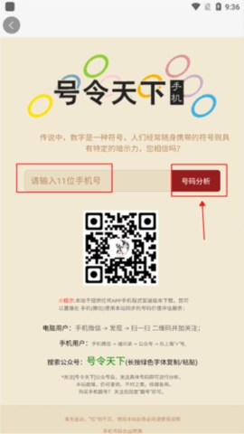 3、进入后在搜索框内输入该手机号码,并点击号码分析