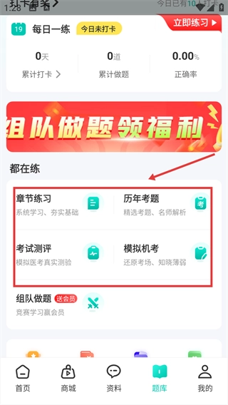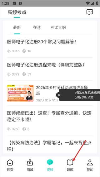 打开,点击底部【题库】选项,进入题库页面。
