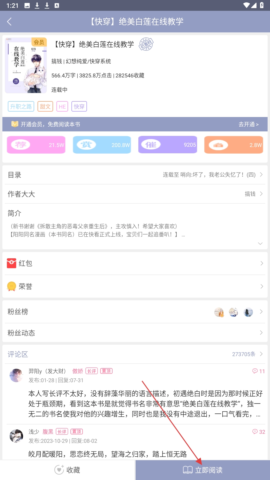 在小说详情页面,点击【立即阅读】按钮,即可开启小说阅读之旅。