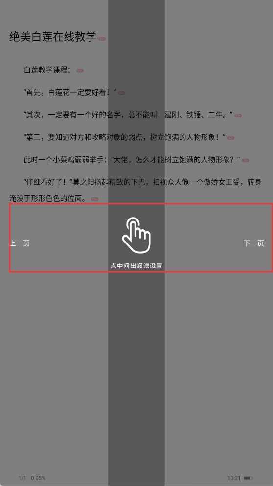 在阅读小说的过程中,点击屏幕的中间部分,就能呼出阅读设置的相关选项,以便进行对应的调整操作。