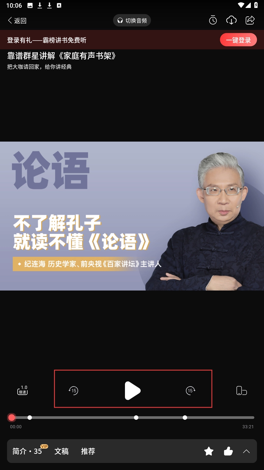 在试听页面,你可以借助底部的暂停、快进等功能按钮,来把控课程的收听进度。