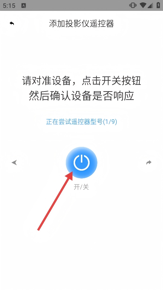 在添加投影仪遥控器的页面,将设备对准爱普生投影仪,点击蓝色按钮后,确认设备是否有响应。
