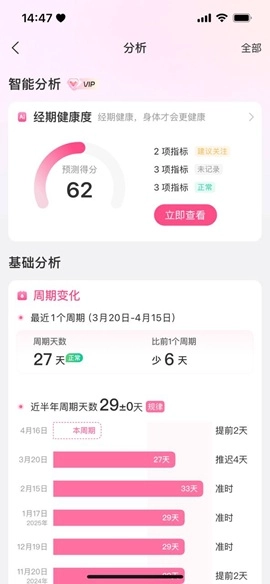 在分析页面,即可查看近半年内的周期天数变化。