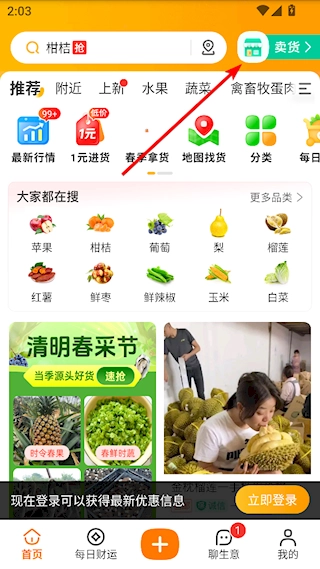 若当前使用的是买家版,可在首页右上角点击【卖货】按钮切换至卖家版。