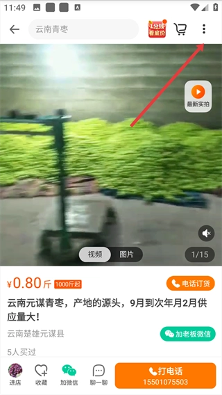 点击页面右上角的三点菜单按钮,展开操作选项列表。