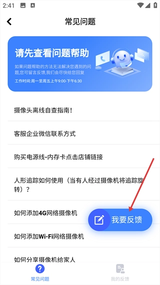 点击“我要反馈”按钮,进入问题反馈页面。