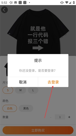 在登录提示框里点击【去登录】按钮,登录操作完成后就能接着进行购买流程了。