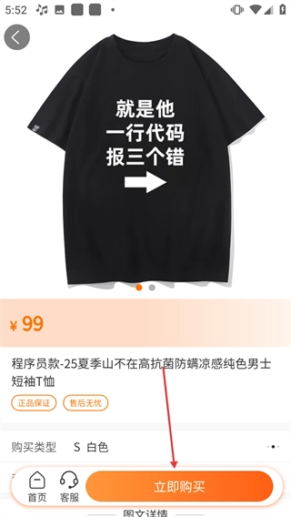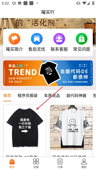 在“曜买吖”首页找到目标程序员T恤商品并点击,即可进入该商品的详情页面。