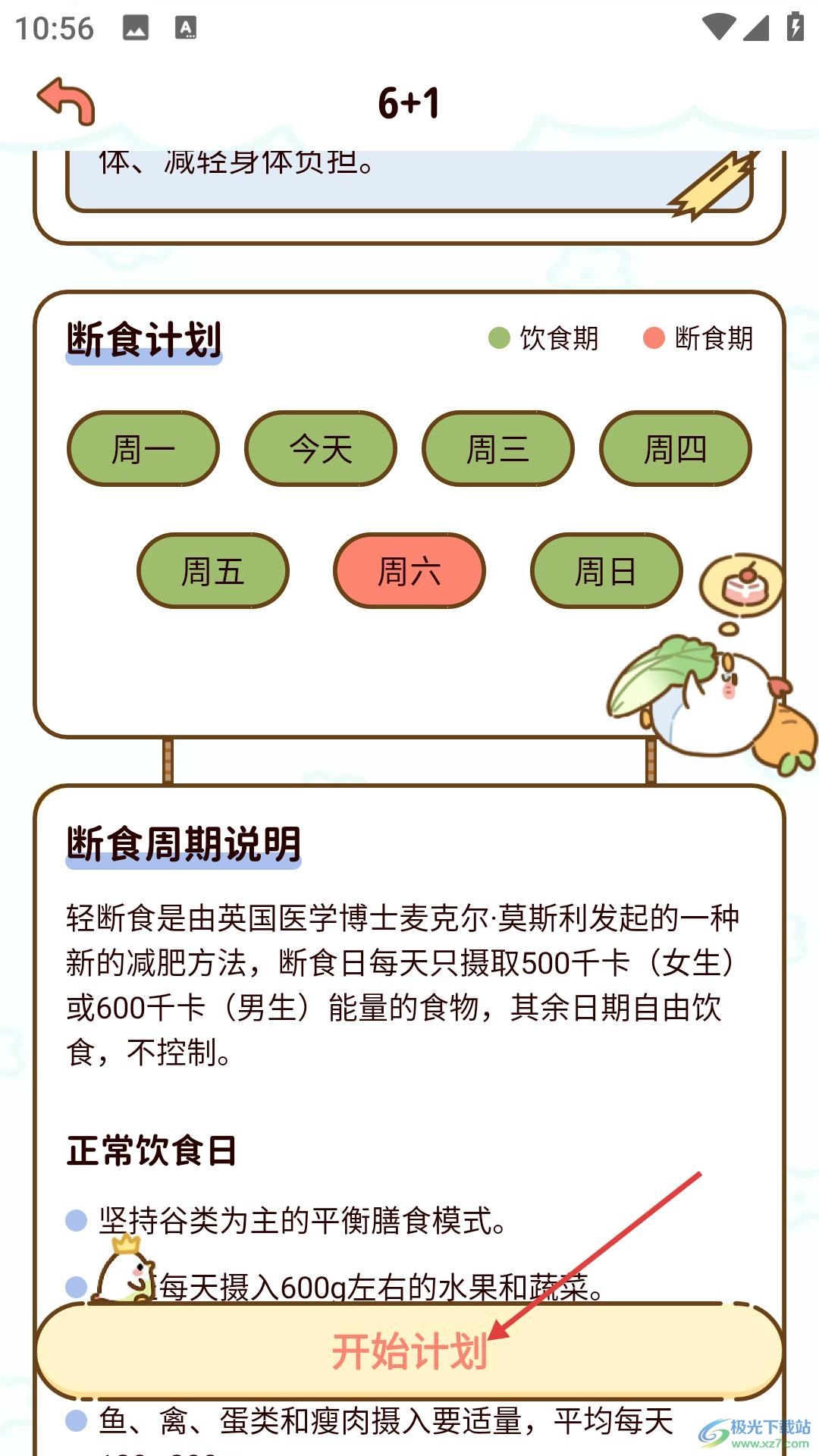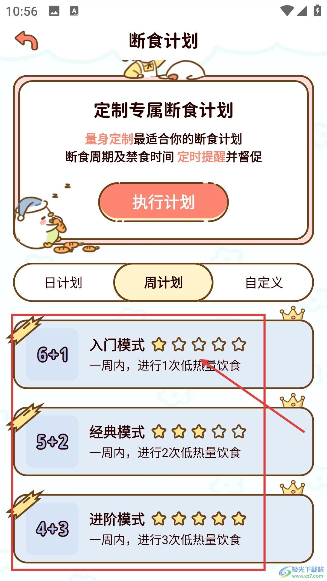 周计划列表里设有不同难度的断食方案,像【6+1入门模式】【5+2经典模式】都可供选择,大家可以结合自身实际情况来挑选适合自己的模式。