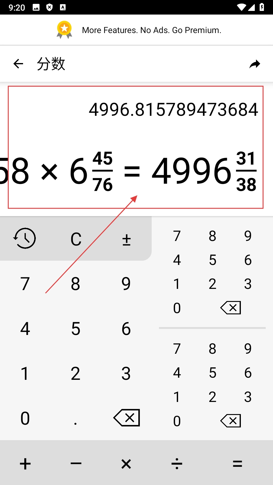 在功能列表中,点击【分数】,进入分数计算页面。