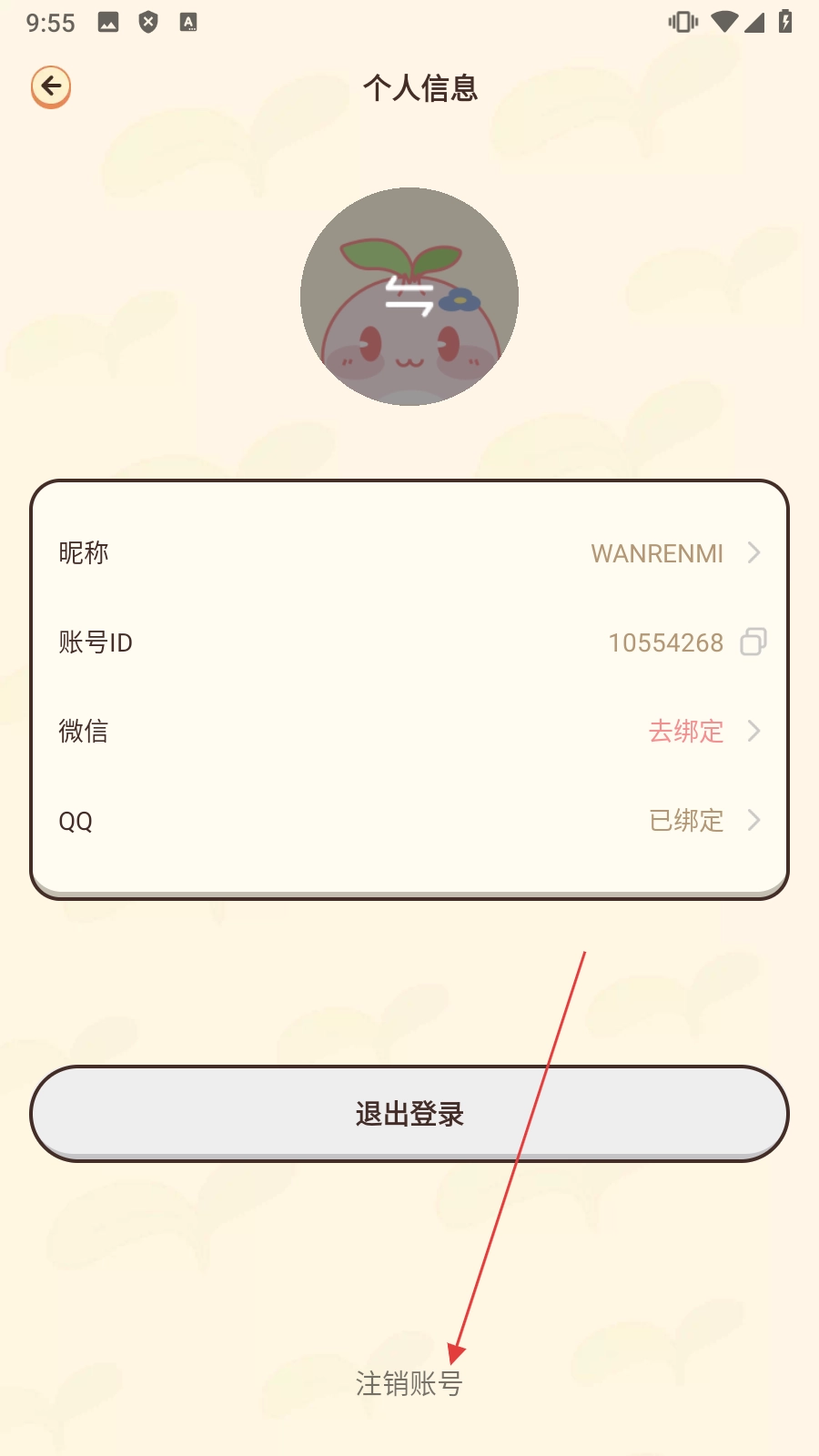 在个人信息页面,点击【注销账号】按钮,即可进入注销账号的提示页面。