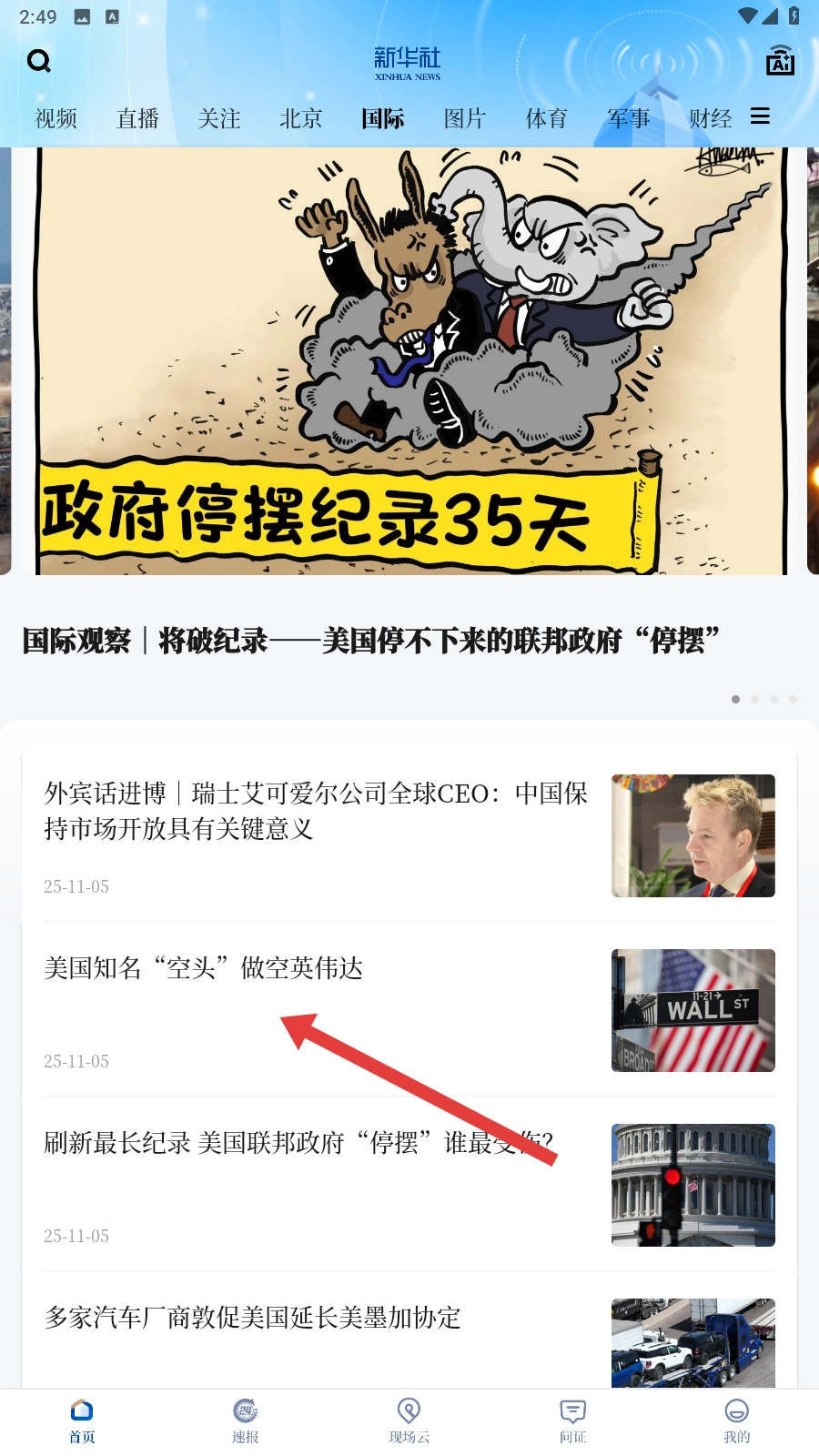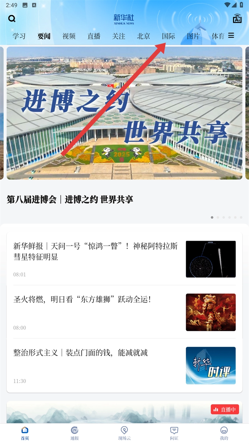 打开新华社平台,点击页面顶部的【国际】栏目,进入国际新闻板块,就可以浏览全球资讯啦。