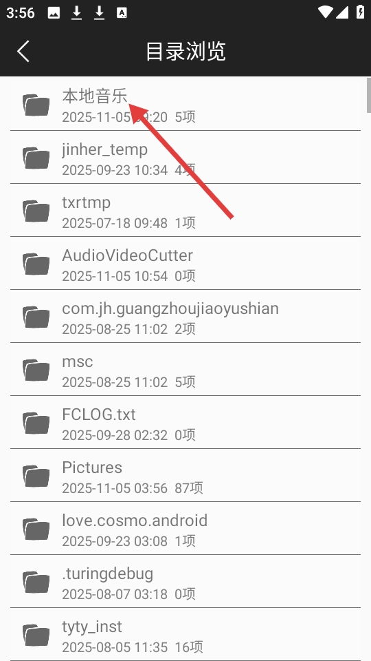 在目录浏览界面点击【本地音乐】,进入其下级目录。