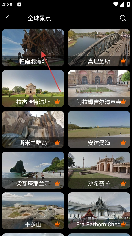 在首页底部找到【全球景点】选项并点击,就能进入全球景点列表界面。
