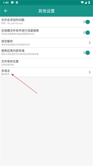 3、在其他设置界面,点击多语言选项。
