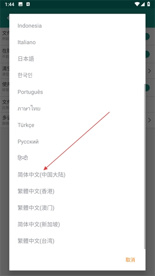 4、在语言选择列表中,点击简体中文(中国大陆)。