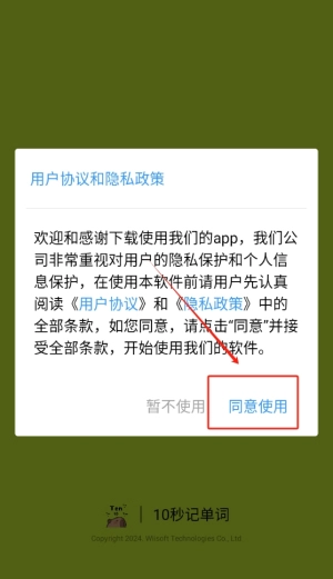 启动应用后,点击“同意使用”以继续操作,成功进入软件界面后,就能开始使用各类学习功能了。