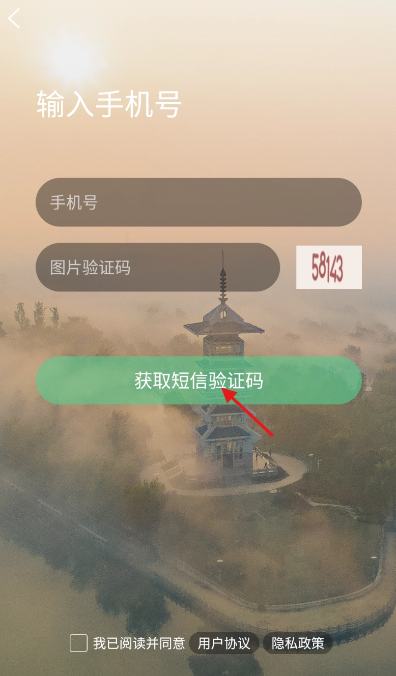 在注册页面填写手机号与图片验证码,点击获取短信验证码后即可完成注册流程。
