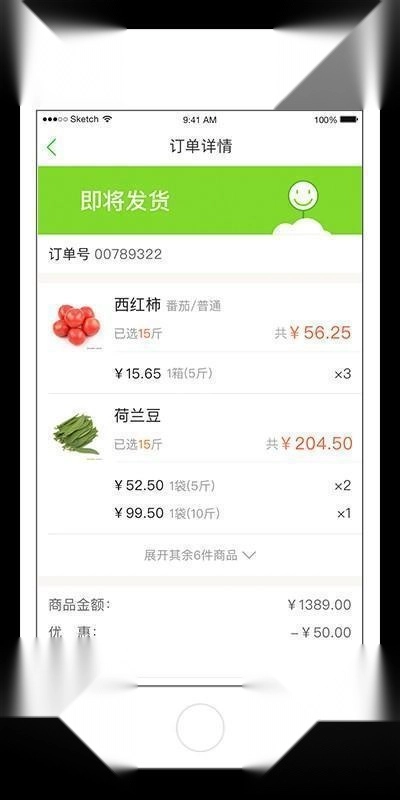 5、查看订单状态 分为“后台确认”“即将发货”“已发货”三种状态
