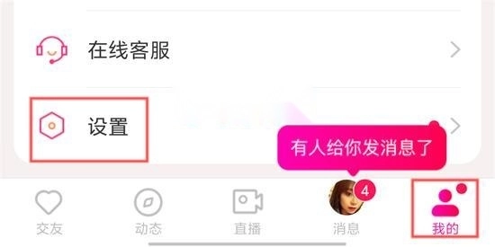打开你的本地陌交友App,个人中心点击设置功能。