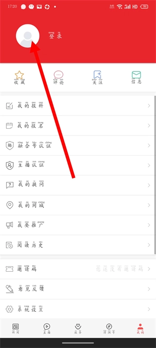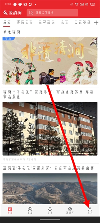 在爱清涧首页,点击底部的“我的”选项,即可进入个人页面。