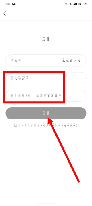 在输入验证码、设置密码、点击注册后,即可完成账号注册。