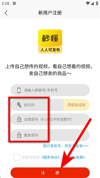 输入验证码,设置密码,勾选相关协议后,点击注册,完成账号创建。