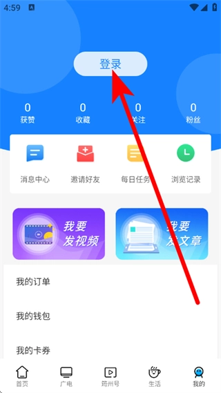 在大美筠连的首页,点击底部的“我的”按钮,就能进入个人页面。