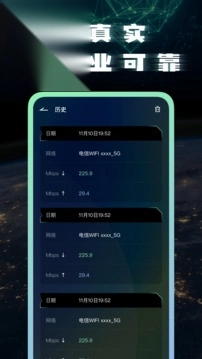2.测速历史及详情,快速查阅历史测速情况,一目了然,轻松查阅测速报告;