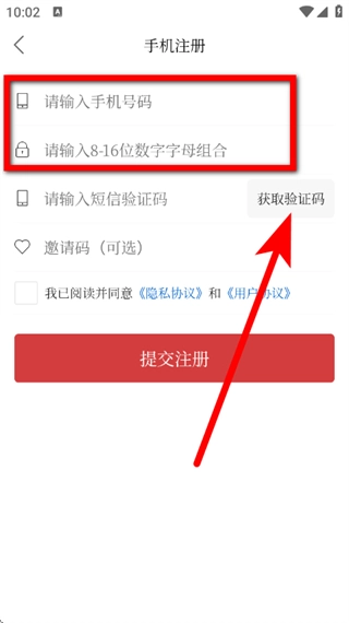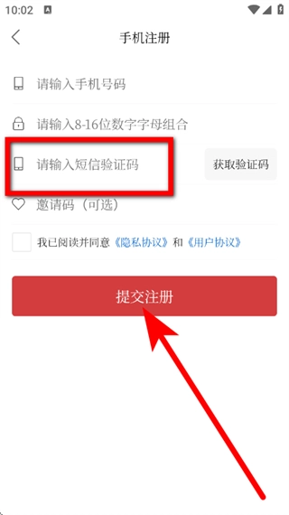 请输入短信验证码,勾选相关选项后,点击“提交注册”按钮,即可完成账号注册流程。