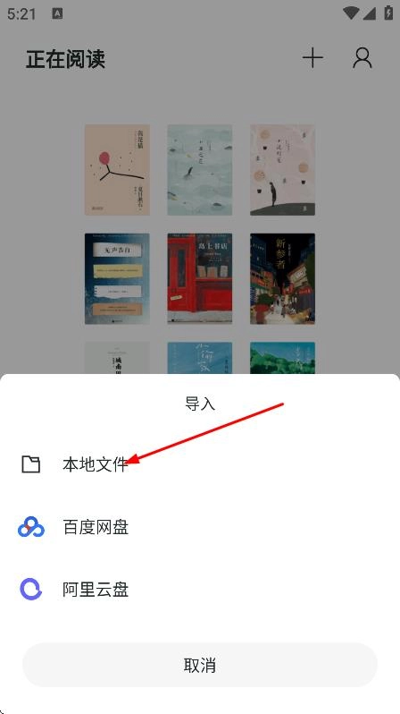 在当前阅读页面,点击“导入文件”按钮,随即会弹出导入选项的弹窗。