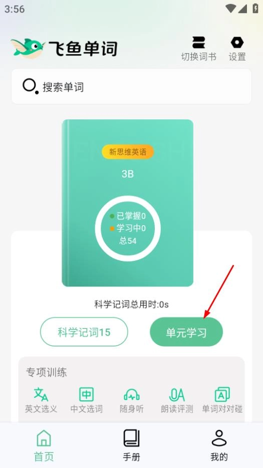 点击页面中的单元学习,进入单元单词学习页面。