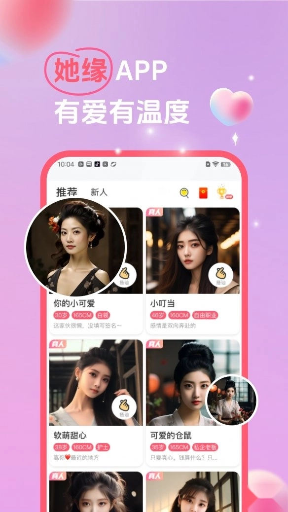 她缘交友是一款具备多样交友模式的软件,能助力用户扩大社交范围,也能让用户邂逅心仪之人。软件借助智能算法为用户精准匹配合适对象,同时配备实名认证机制,保障用户安全使用。