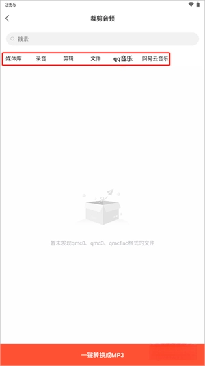 进入“音频剪辑”界面后,你会看到媒体库、录音、剪辑、文件、QQ音乐、网易云音乐等选项,从中选择你想要剪辑的音频,然后点击下一步,就能根据自己的需求开始剪辑操作了。